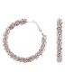 Et par iøjnefaldende creoler, der kombinerer kølig sølvfarve med fine, lyserosa sten i nuancen Blossom. De facetterede glassten er sat tæt hele vejen rundt på fronten og giver en levende glans, når lyset rammer. Formen er klassisk rund, og den glatte metalfinish gør dem behagelige at bære – ideelle, når du vil tilføje et feminint touch uden at gå på kompromis med komfort.
