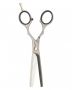 Denne saks er ergonomisk designet, for at reducere belastningen i hÌnder og hündled, med fingerstøtte og ringefingerindsatser for ekstra komfort. Det ene blad er flad forkantvinkel og mikro fortanding pü det andet blad. Saksen har 28 "tÌnder".